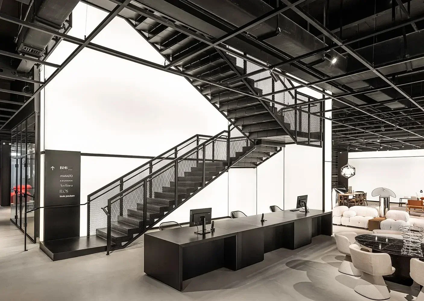 On the ground floor, visitors will find B&B Italia’s iconic products and new releases, including a large Arclinea kitchen that enhances the Design Studio’s layout. Ascending the grand staircase to the second floor, guests are welcomed by an extensive display of B&B Italia Outdoor furniture, B&B Italia wardrobes, a sophisticated section dedicated to Maxalto’s latest collection, and dedicated areas for Flos and Louis Poulsen lighting.