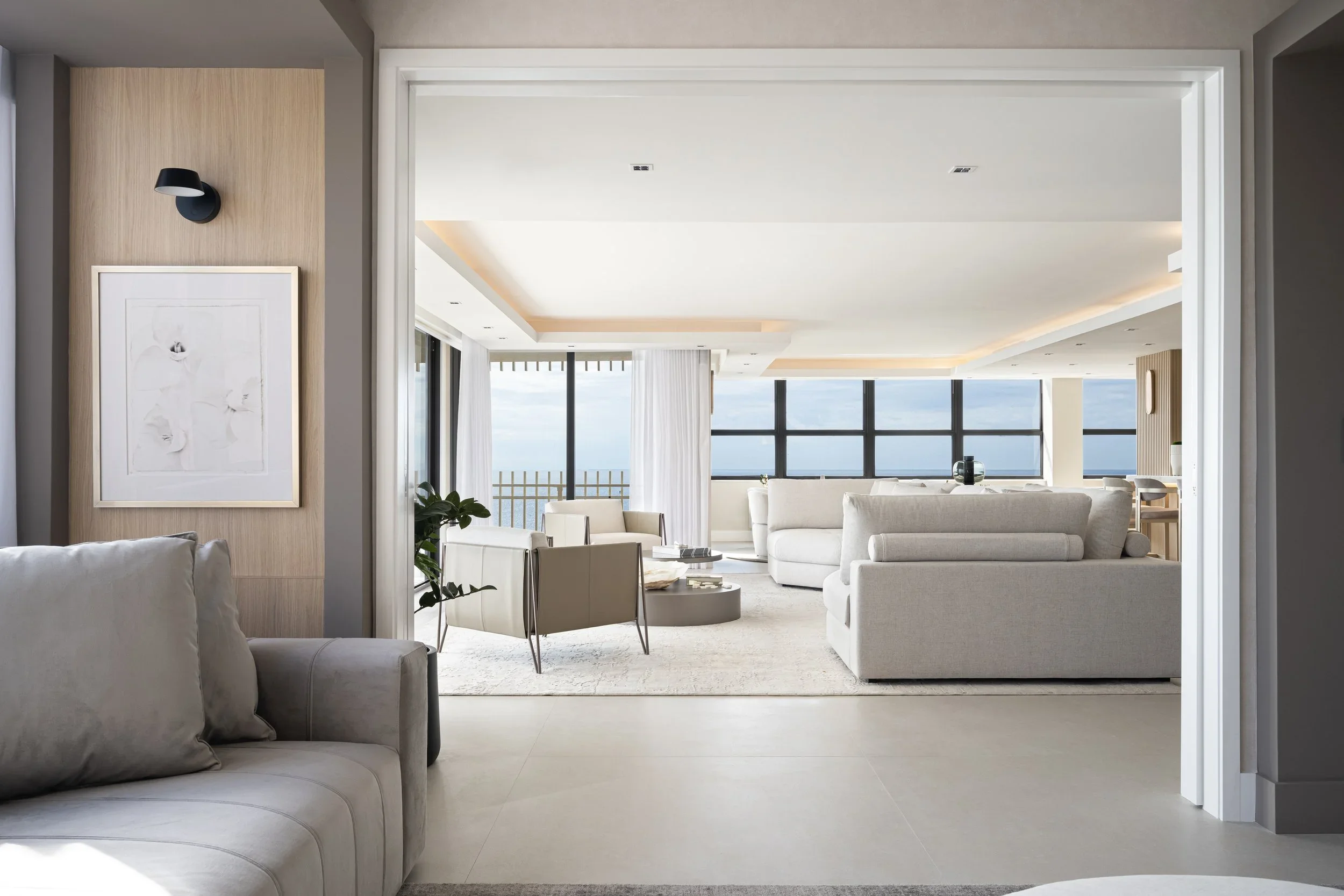 ANDstudio was hired to transform another dated 3-bedroom 3-bathroom corner unit in Coconut Grove’s iconic Grove Isle. The 1980’s building had a number of obstacles that we had to overcome, from floor-to-ceiling slab clearances of only 8’-0”, to inconvenient locations of the electrical panel and plumbing stacks, we pushed the boundaries of what was possible in order to provide our clients with unmatched views from every room.