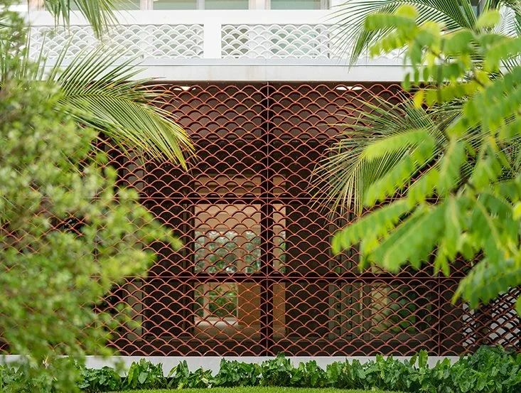 ANDstudio was hired to build a residence on a vacant lot in the historic Morningside neighborhood of Miami, which came with HEP board approved plans for a house by DEN Architects. Their original design incorporated traditional terra-cotta barrel tile roofs as an unconventional building material, and in a nod to the local Miami Mid Century Modern “MiMo” style of architecture, the screens create privacy and filter the harsh Miami sun, while still allowing light to filter in through the full height sliding glass doors. Working with the previously approved facade, ANDstudio enlarged the footprint and reconfigured the interiors of the house to make it more functional for the new owner. This house demonstrates how design can be respective of its context without mimicking the past.